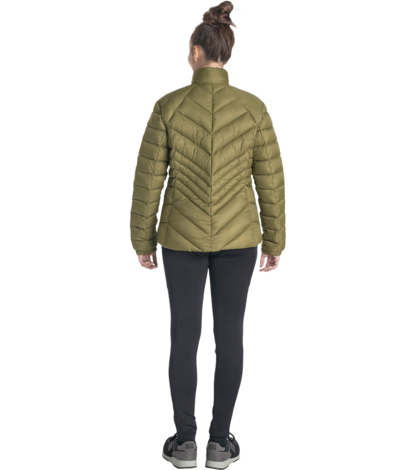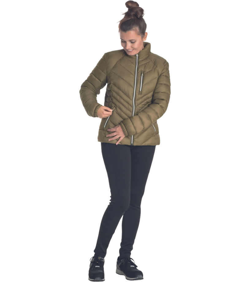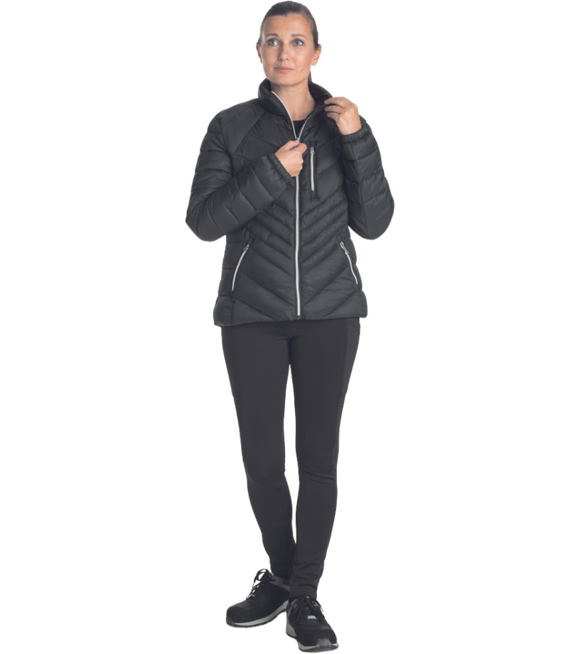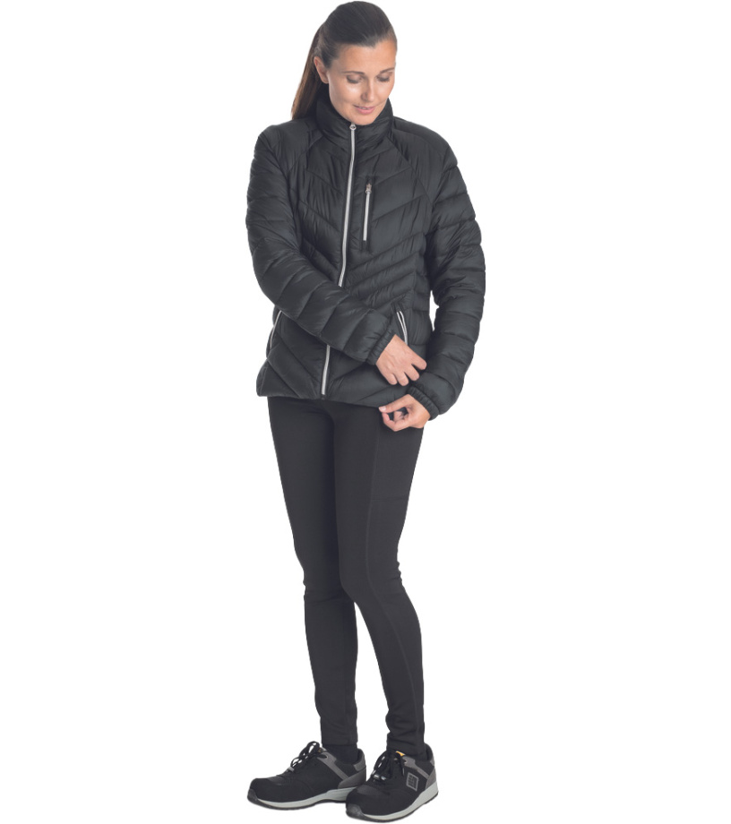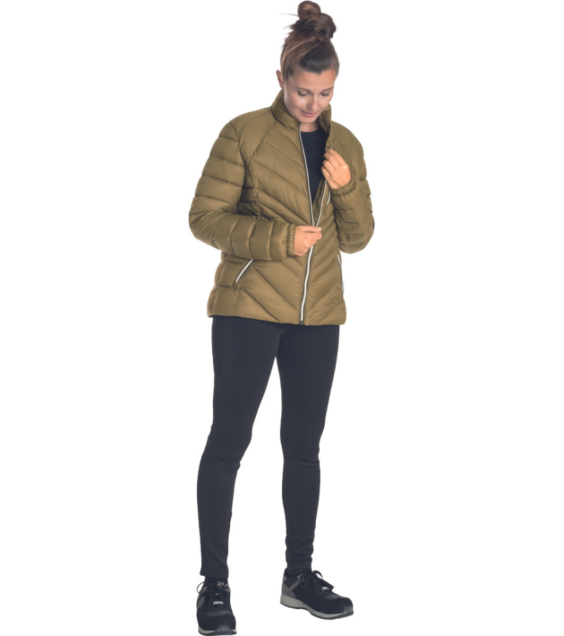 Táto dámska voľnočasová zateplená bunda ponúka pohodlie a štýl v chladnejšom počasí. Je vybavená hlavným zapínaním na zips, dvoma praktickými bočnými vreckami na zips a tiež náprsným vreckom pre bezpečné uloženie drobností. Elastické manžety rukávov zaisťujú príjemné priľnutie a lepší tepelný komfort. Ideálne na každodenné nosenie aj voľnočasové aktivity.