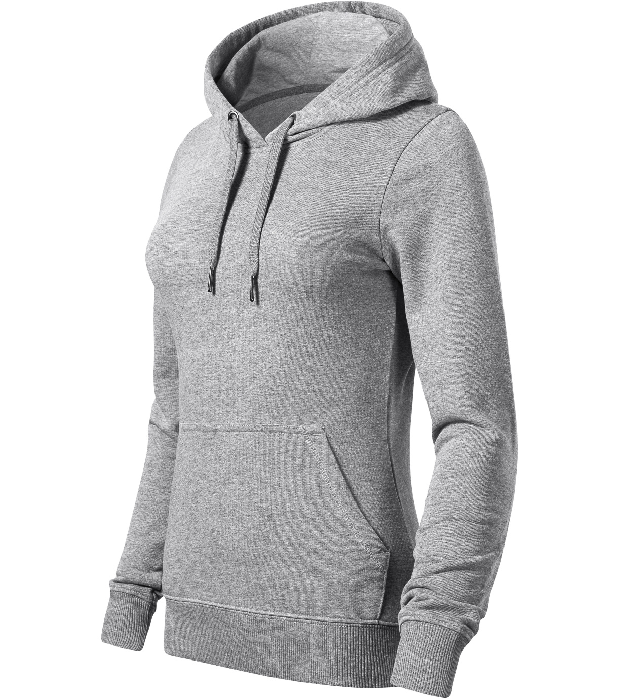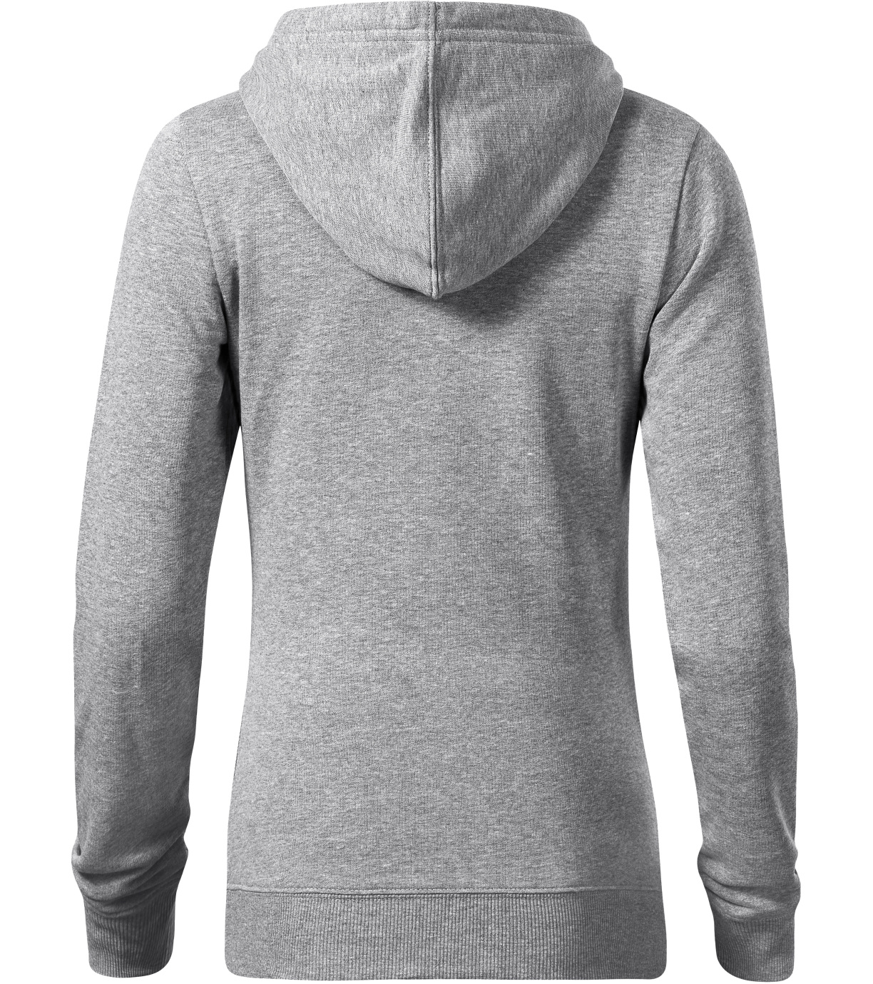 Dámska mikina z certifikovaného recyklovaného polyesteru. Bez štítku - pripravená na rebranding. Mierne priliehavý strih s bočnými švami. Kapucňa s podšívkou, zapínanie na šnúrku, vnútorný výstrih zapečatený páskou vo farbe vonkajšieho materiálu. Nakladané klokanie vrecko. Spodný lem a manžety rukávov z rebrového úpletu 2:2 s 5 % elastanu. Materiál: 80 % bavlna, 20 % recyklovaný polyester