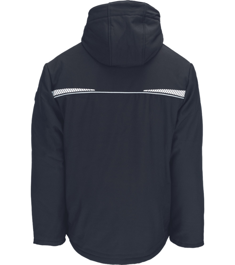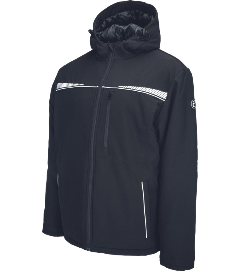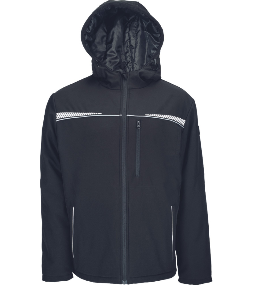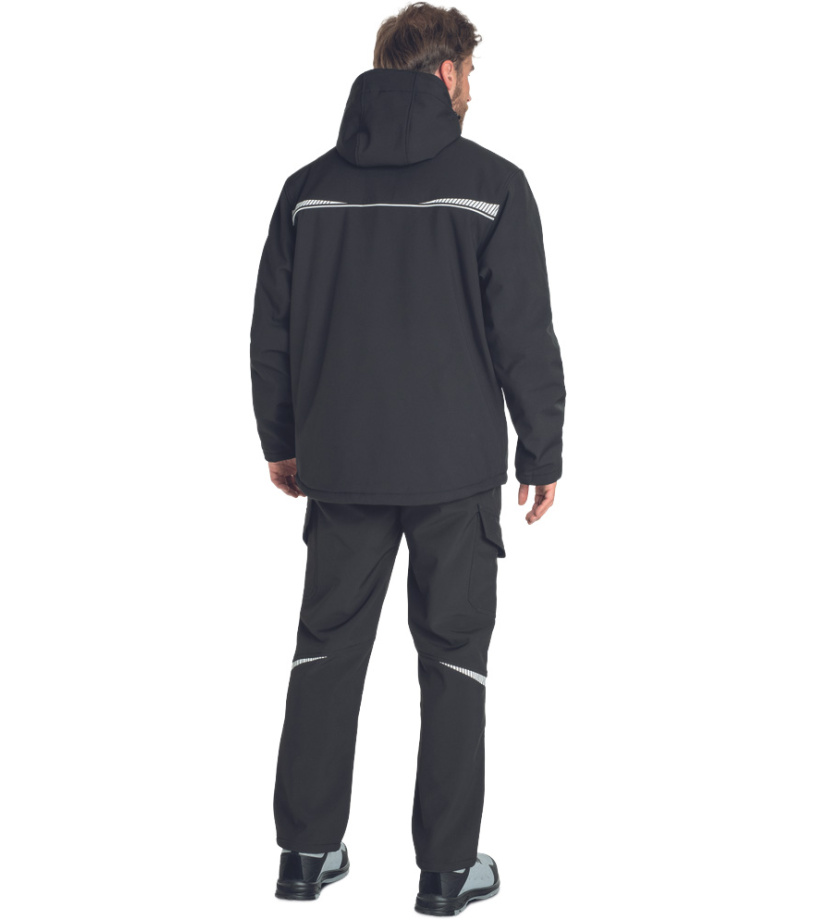 Zimná softshellová bunda so zateplenou kapucňou je navrhnutá pre maximálne pohodlie aj ochranu v chladnom počasí. Hlavné zapínanie na zips dopĺňajú dve bočné vrecká na zips, ľavé náprsné vrecko a tiež praktické vnútorné náprsné vrecko pre bezpečné uloženie drobností. Elastické manžety rukávov zaisťujú lepší tepelný komfort a ventilácia na zips v podpazuší umožňuje reguláciu odvetrávania pri zvýšenej aktivite. Pre vyššiu viditeľnosť za šera či tmy je bunda vybavená reflexnými detailmi a lemovaním. Ideálna voľba pre prácu aj voľný čas počas zimného obdobia.