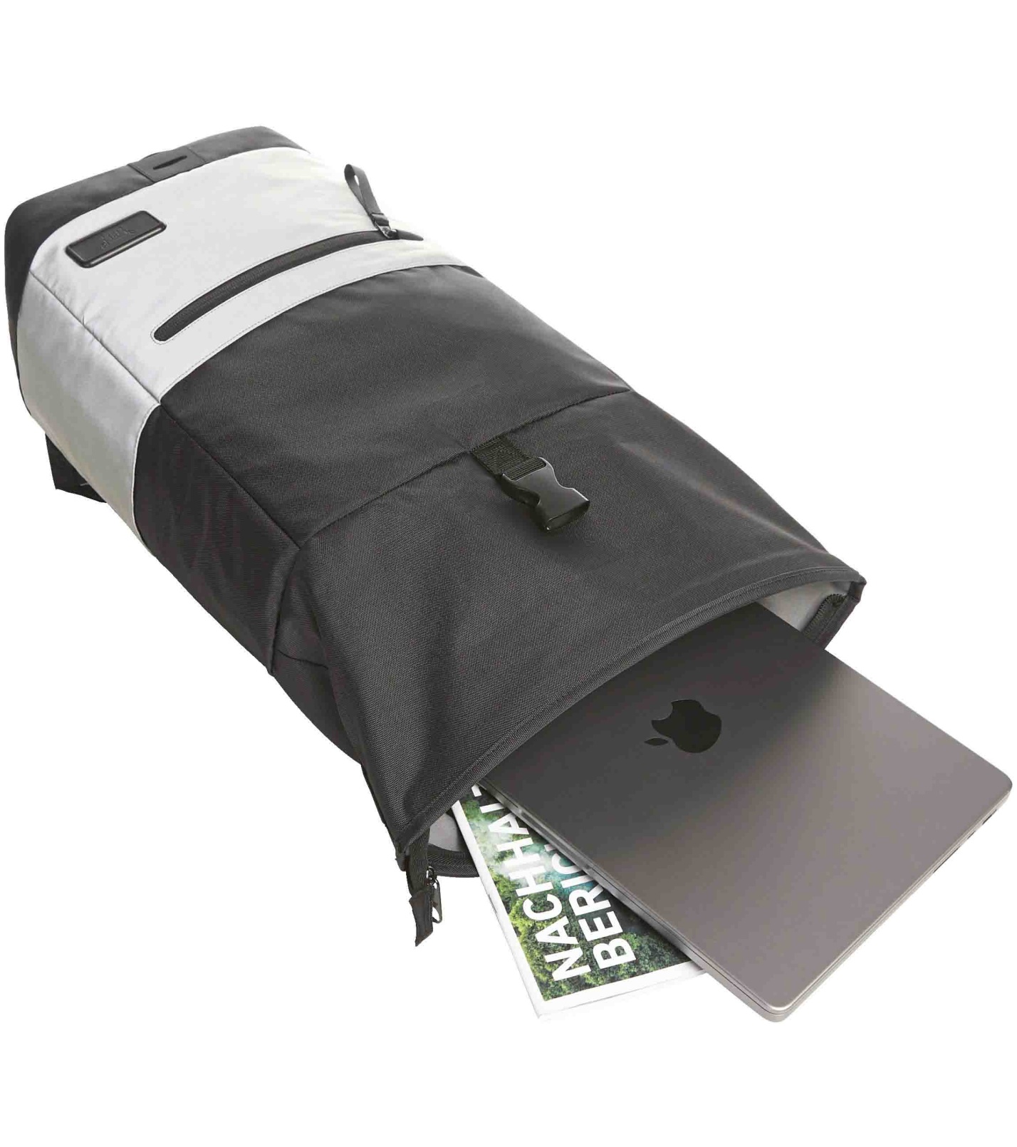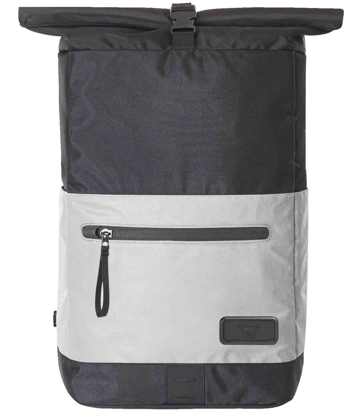 Štýlový reflexný batoh s rolovacím vrchom, hlavnou priehradkou na zips a zapínaním na pracku