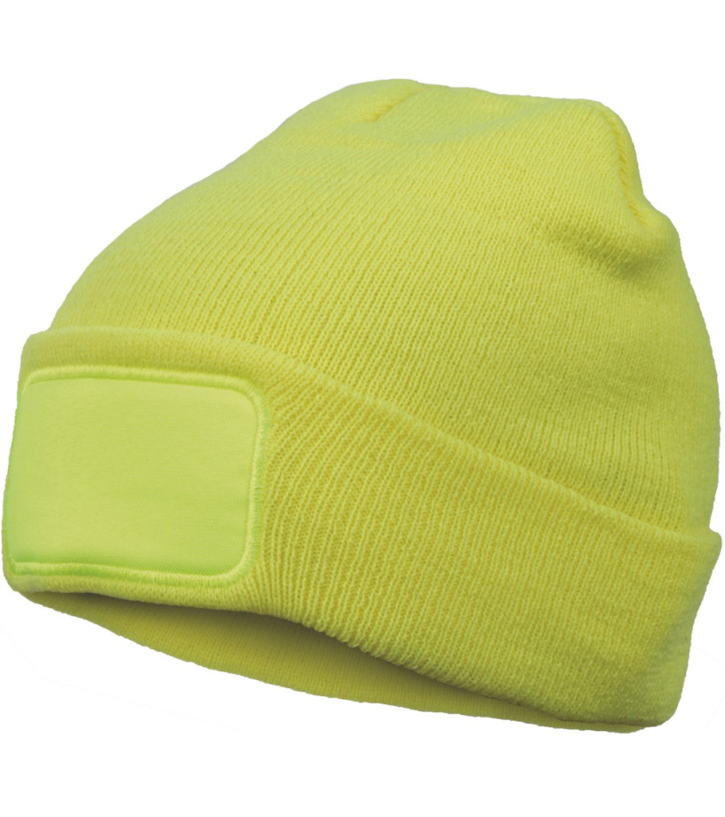 Pletená zimní čepice s čelním štítkem pro výšivku nebo potisk.