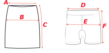 | F  | dĺžka šortiek  | 8  | 8,5  | 9  | 9,5  | 10  | 10,5  | 11  |