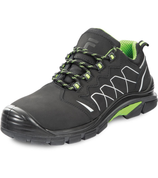 Moderní bezpečnostní polobotka s kompozitní stélkou proti propichu a kompozitní tužinkou ve špici, která chrání před stlačením silou do 15 kN nebo pádem břemena o váze do 20 kg z výšky 1 m. Antistatická podešev vyrobena z kombinaci polyuretanu a velice odolné gumy garantuje nejenom komfort, ale i bezpečí díky protiskluzným vlastnostem podrážky, která je navíc rezistentní olejům a oděru. Svršek obuvi je vyrobený z přírodní kůže „NUBUCK“ a vnitřní podšívka z prodyšného polyesteru. Reflexní prvky garantuji zvýšenou viditelnost uživatele. Tento model je vybaveny komfortní vnitřní stélkou, která díky gelové patě ještě lepe tlumí nárazy a přináší maximální pocit pohodli během práce. Tyhle boty vypadají jako sportovní obuv, ale při tom dokonale ochrání vaší nohy. V každé krabici druhy par tkaniček navíc.