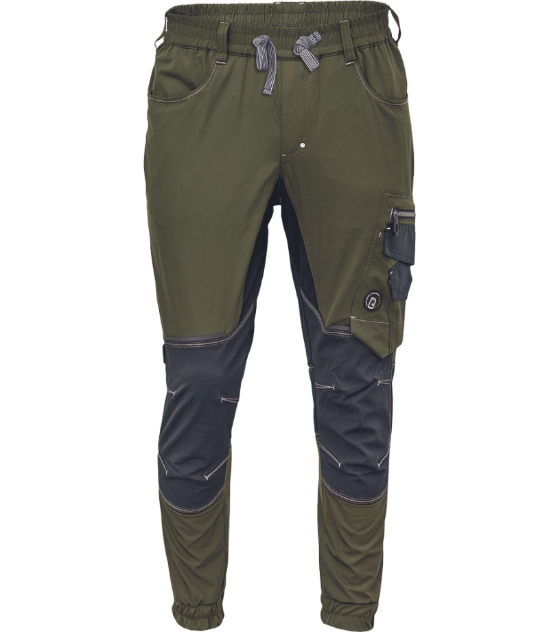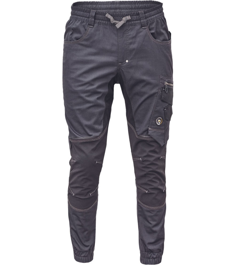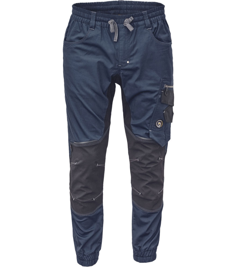 Pánské pracovní kalhoty se širokým elastickým pasem • možnost stažení v pase tkanicí • 2 hluboké boční kapsy • 1 stehenní kapsa • 2 zadní kapsy • CORDURA® zesílení v oblasti kolen • reflexní detaily • spodní lemy nohavic na gumu