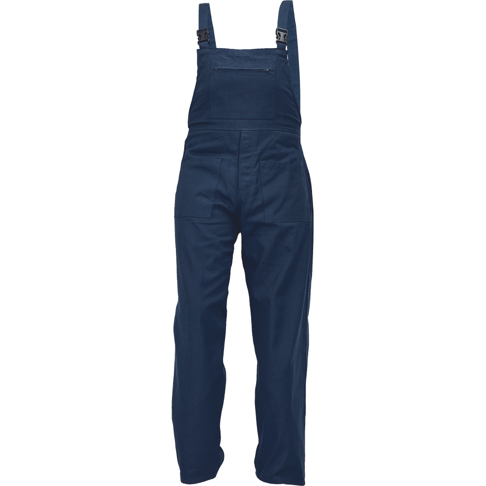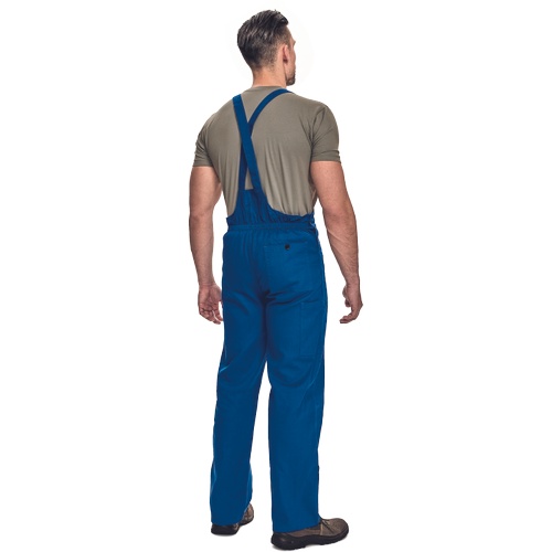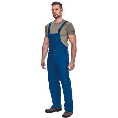 Pánské pracovní kalhoty s laclem. 2 přední kapsy, 2 zadní kapsy. 1 velká náprsní kapsa se zapínáním na zip. Šle s plastovými sponami.
