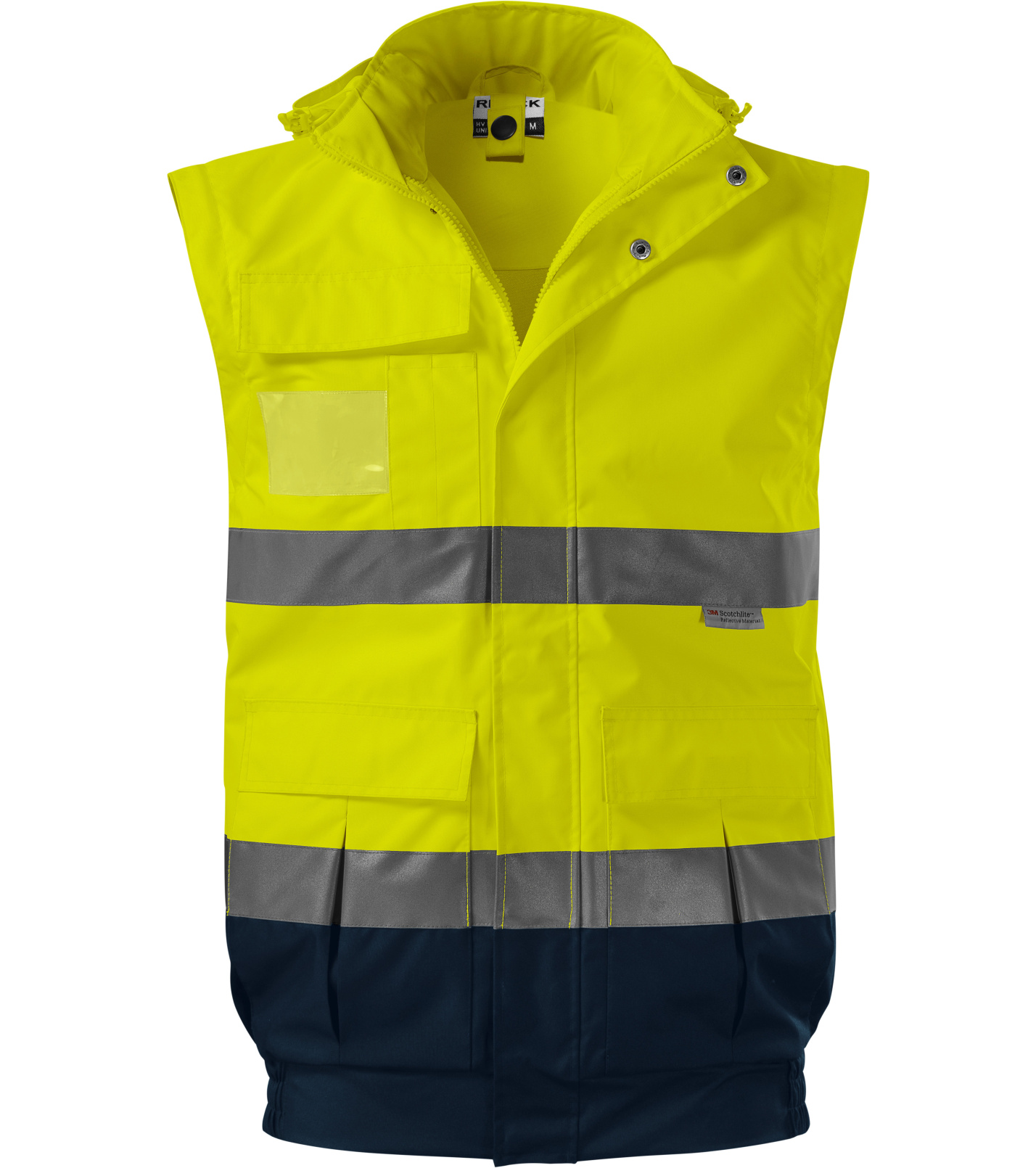 Vnútorná fleecová bunda z teplého fluorescenčného materiálu je odnímateľná. Je vybavená certifikovanými reflexnými pruhmi 3M, kosteným zipsom po celej dĺžke. Má vrecká s kosteným zipsom, lemovanie elastickými pásikmi, obojstrannú úpravu proti žmolkovaniu a certifikáciu podľa noriem EN ISO 20 471 (trieda 2) a EN ISO 13 688.
