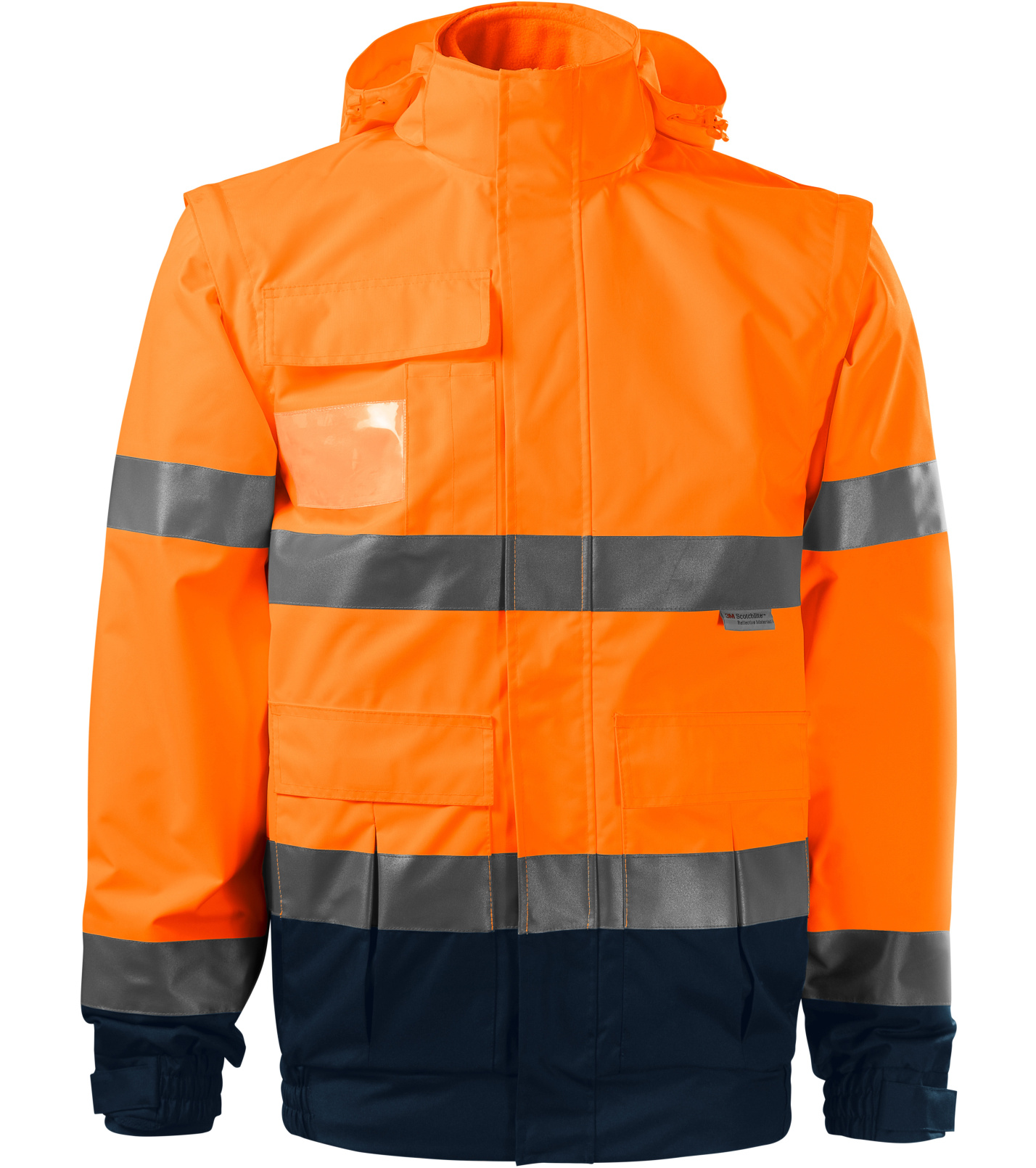 Viacúčelová pracovná bunda 4v1 s vysokou viditeľnosťou v dvojfarebnom dizajne.