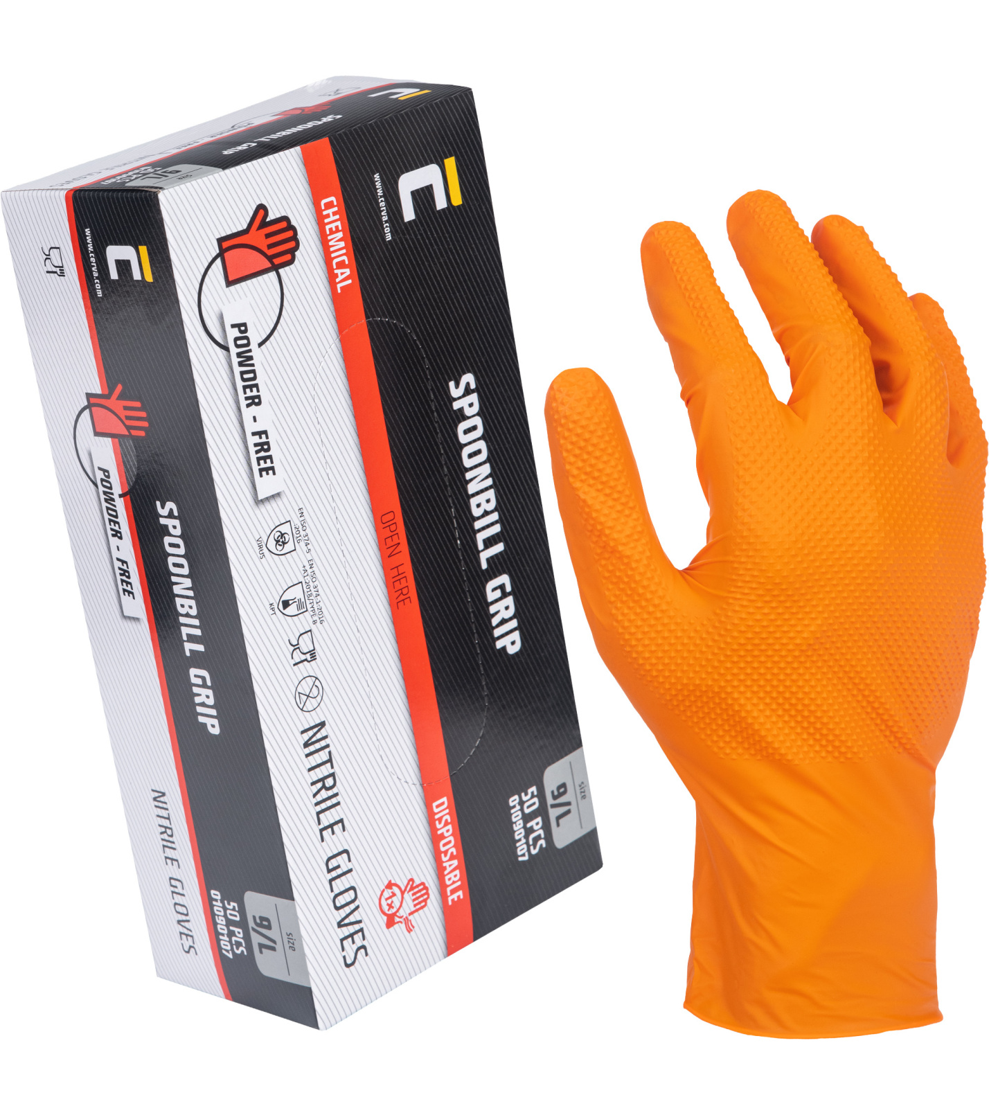 Jednorazové nitrilové rukavice - extra silné, nepudrované, 50 kusov v balení. Vďaka diamantovej textúre poskytujú výborný úchop aj v mastnom, mokrom alebo znečistenom prostredí. Perfektná voľba pre mechanikov, montérov, autoopravárov a všetkých, ktorí potrebujú spoľahlivú ochranu rúk pri práci v náročnom prostredí.