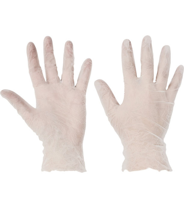 Jednorazové vinylové nepudrované rukavice vhodné pre krátkodobý styk s netukovými potravinami.