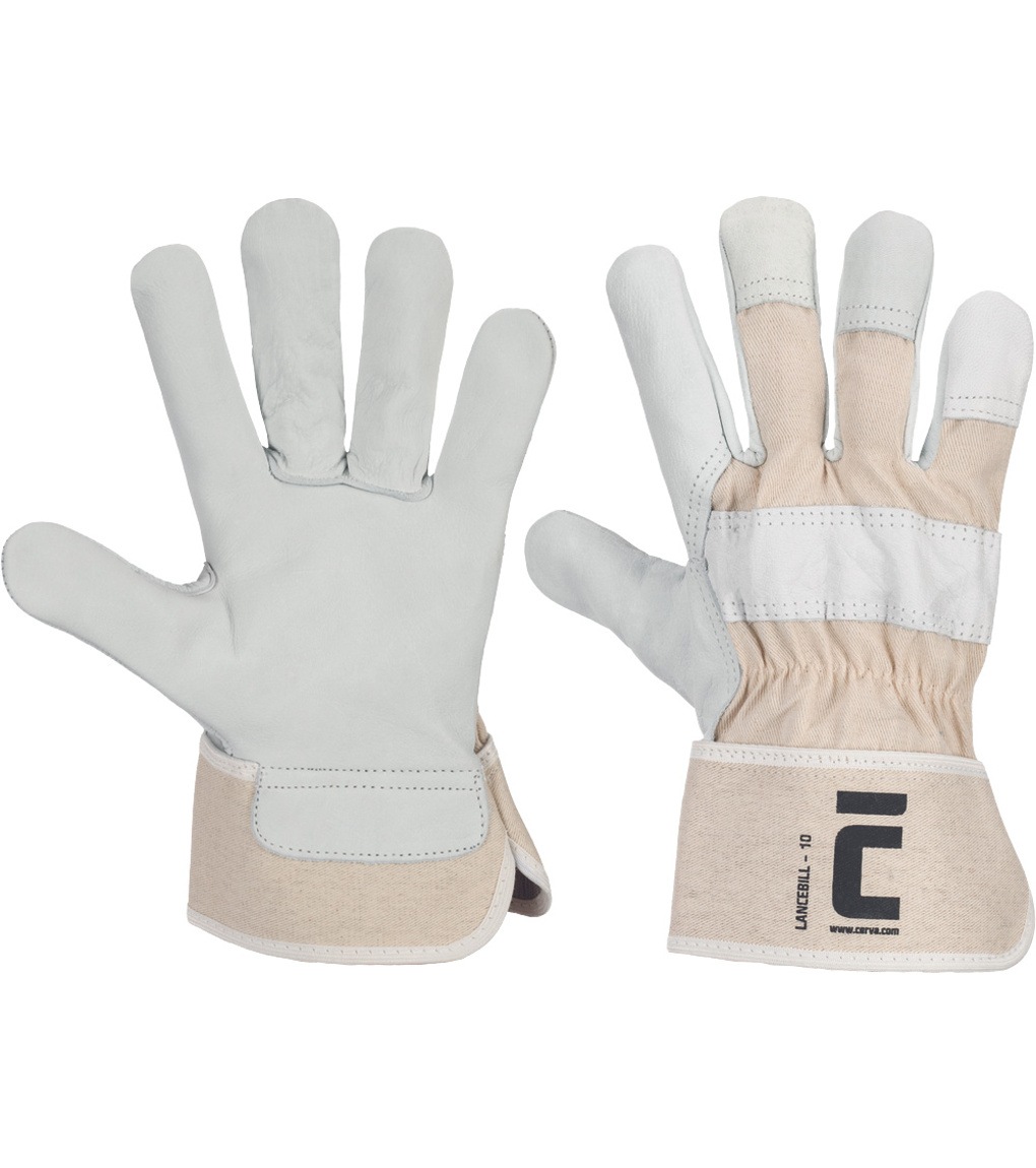 Kombinované pracovné rukavice vyrobené z kvalitnej lícovej hovädzej kože v dlani a prstoch, ktorá zaisťuje výbornú odolnosť voči oderu, mechanickému poškodeniu a dlhšiu životnosť pri pravidelnom používaní. Rukavice Chrbát sú vyrobené z pevnej bavlnenej látky, ktorá dbá na spracovanie a dáva prácu. Rukavice sú ideálne pre široké spektrum činností – od stavebníctva a poľnohospodárstva po priemysel alebo prácu na záhrade. Vystužená manžeta poskytuje ochranu zápästia a poskytuje navliekanie.