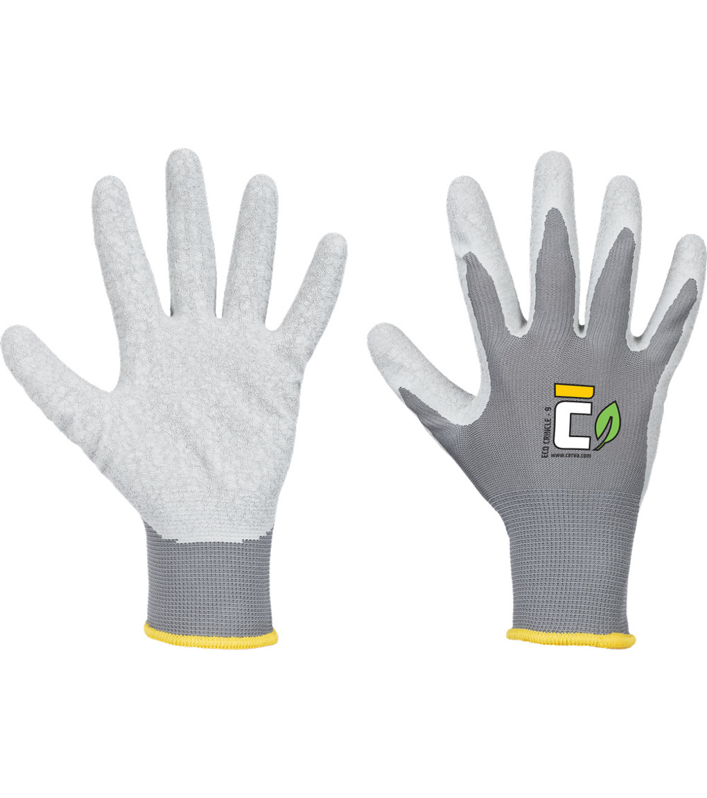Tieto odolné, päťprsté bezšvové pracovné rukavice sú vyrobené zo šedej recyklovanej polyesterovej priadze, ktorá poskytuje dlhotrvajúcu pevnosť a pohodlie počas celého pracovného dňa. Dlaň je potiahnutá šedým zvrásneným latexom, ktorý zaisťuje výbornú priľnavosť a vysokú odolnosť proti oderu ako v suchom, tak aj mokrom prostredí. Sú ideálnou voľbou pre náročné pracovné podmienky, kde je potrebné spojiť spoľahlivosť, výkon a ohľaduplnosť k životnému prostrediu.