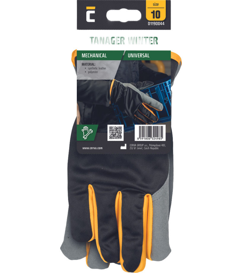 Zimný, zateplený variant rukavíc TANGER, vyrobený z syntetickej usne (mikrovlákna) na dlani a čierneho polyesteru na chrbte. Ponúka vynikajúce mechanické vlastnosti, sú pohodlné a priedušné.