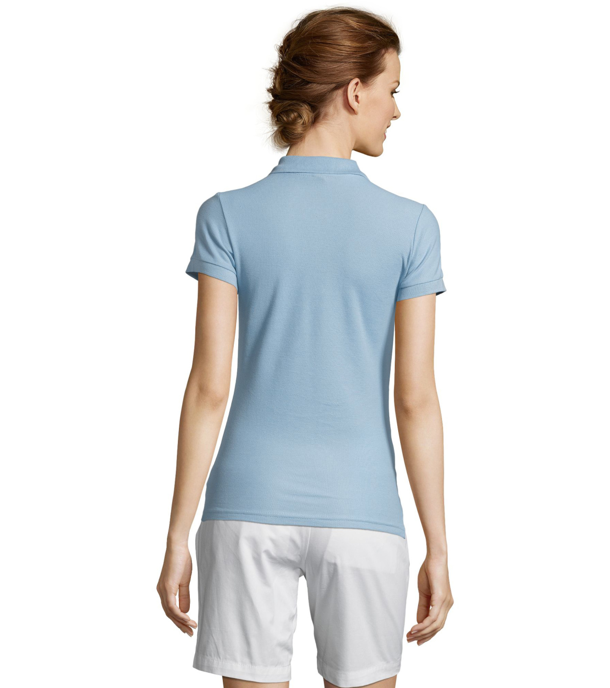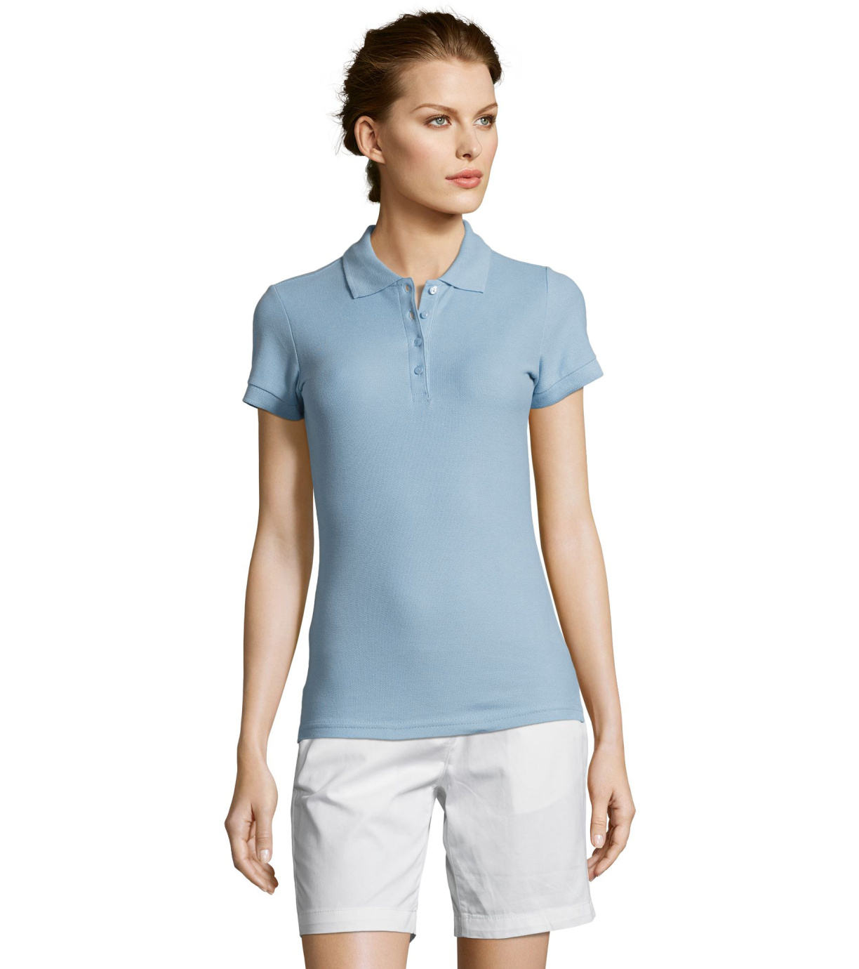 Dámska štýlová bavlnená polokošeľa s krátkym rukávom. Rovný lem s bočnými rázporkami, rebrovaný golier a manžety. Polokošeľa priliehavého strihu so štyrmi gombíkmi na zapínanie pri krku vo farbe polokošele.