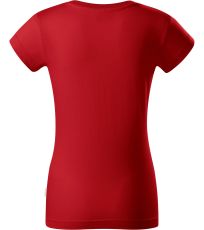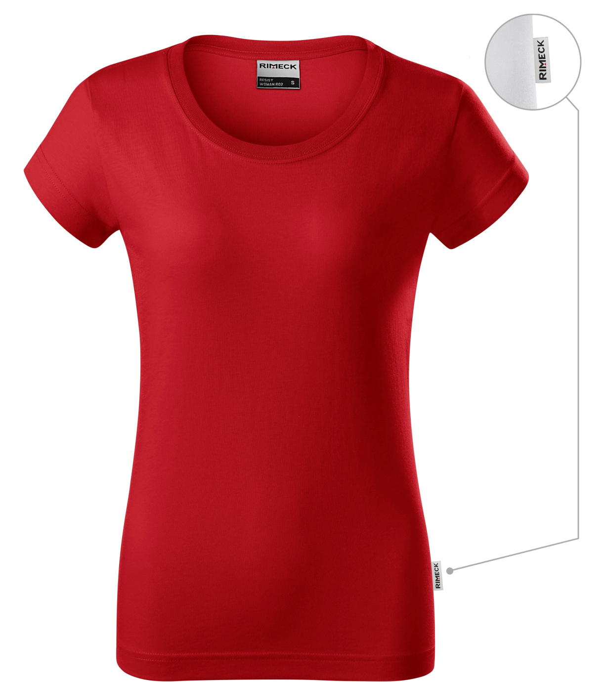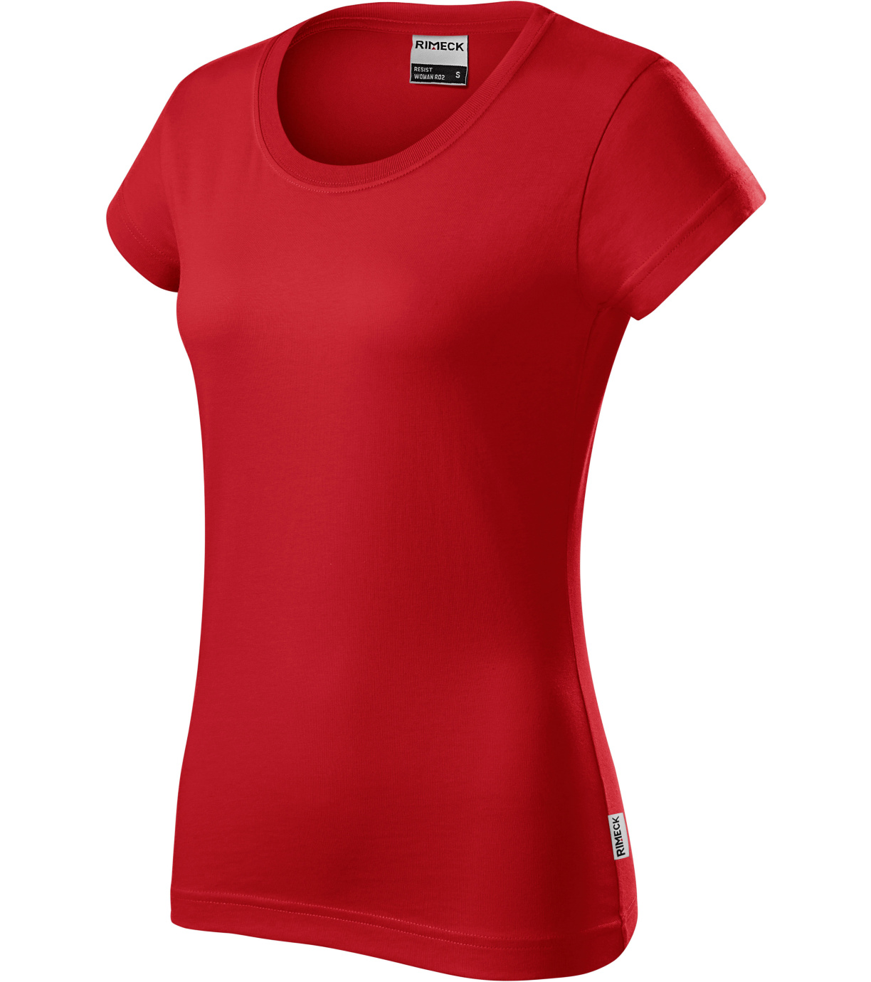 Dámske tričko mierne priliehavého strihu s bočnými švami a kratšími rukávmi z predsrážanej bavlny odolnej voči vyšším teplotám, ktoré možno prať pri 95 °C (biele) a 60 °C (farebné), vhodné na potlač a výšivku, má výstrih lemovaný rebrovaným úpletom 1:1 a ramenné švy spevnené páskou.