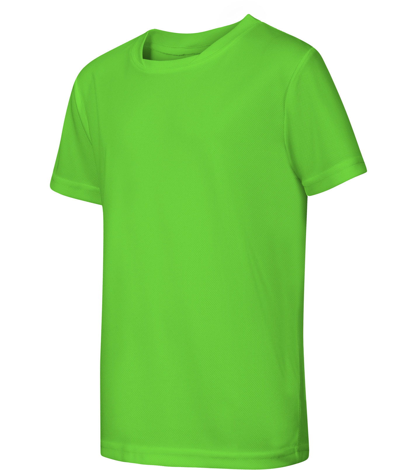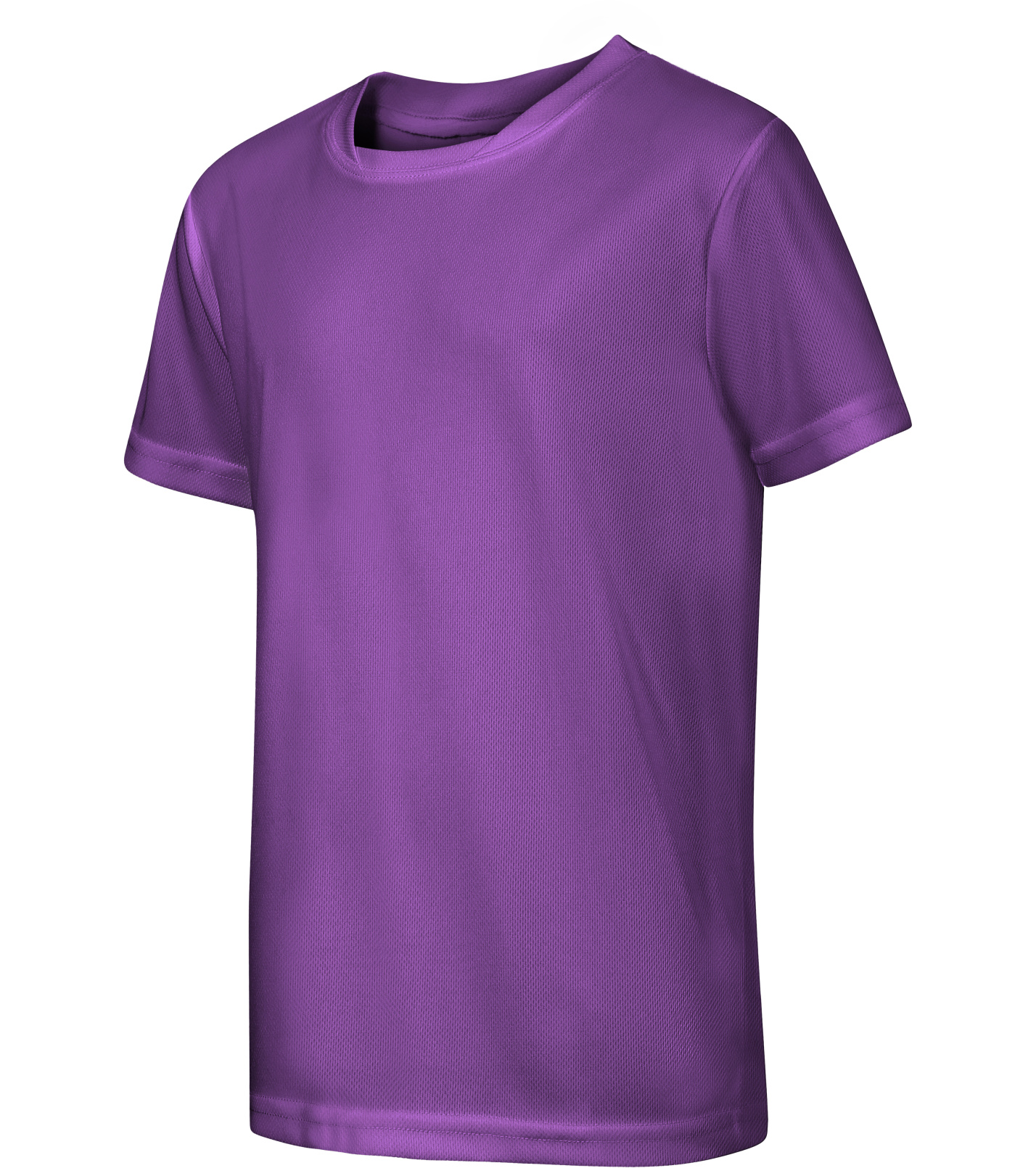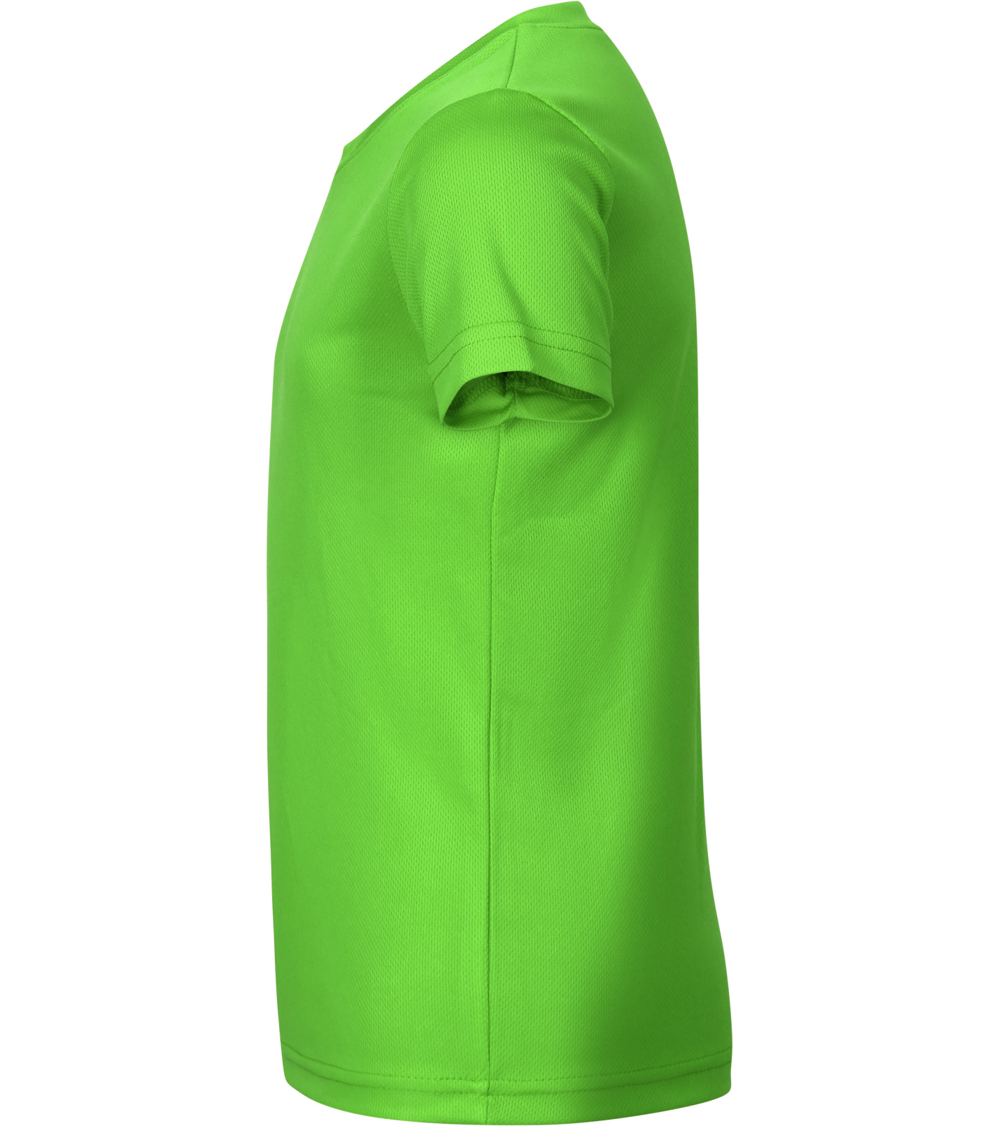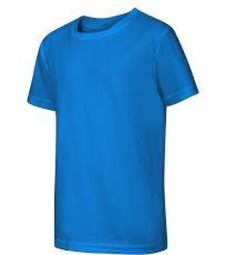 Moderné detské tričko strihu s bočnými švami z rýchloschnúceho materiálu ideálneho na šport a pohybové aktivity, vhodné na sublimačnú potlač (jasné farby) má nezvyčajne členený výstrih a spevnené ramenné švy páskou