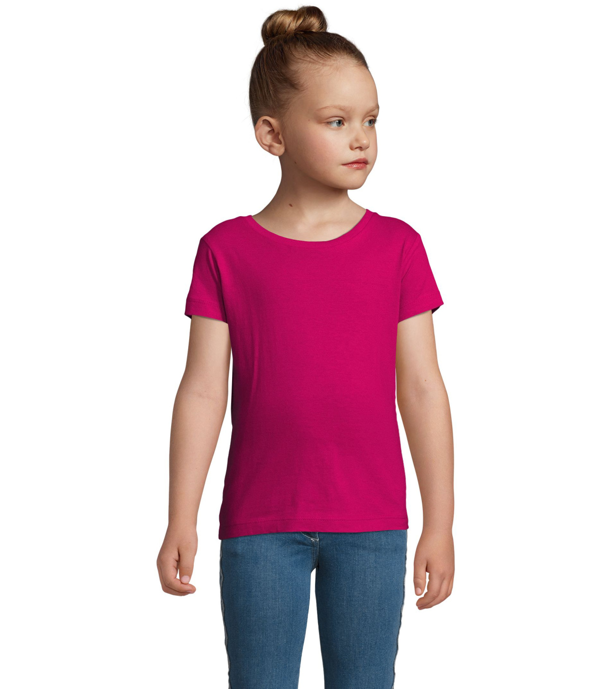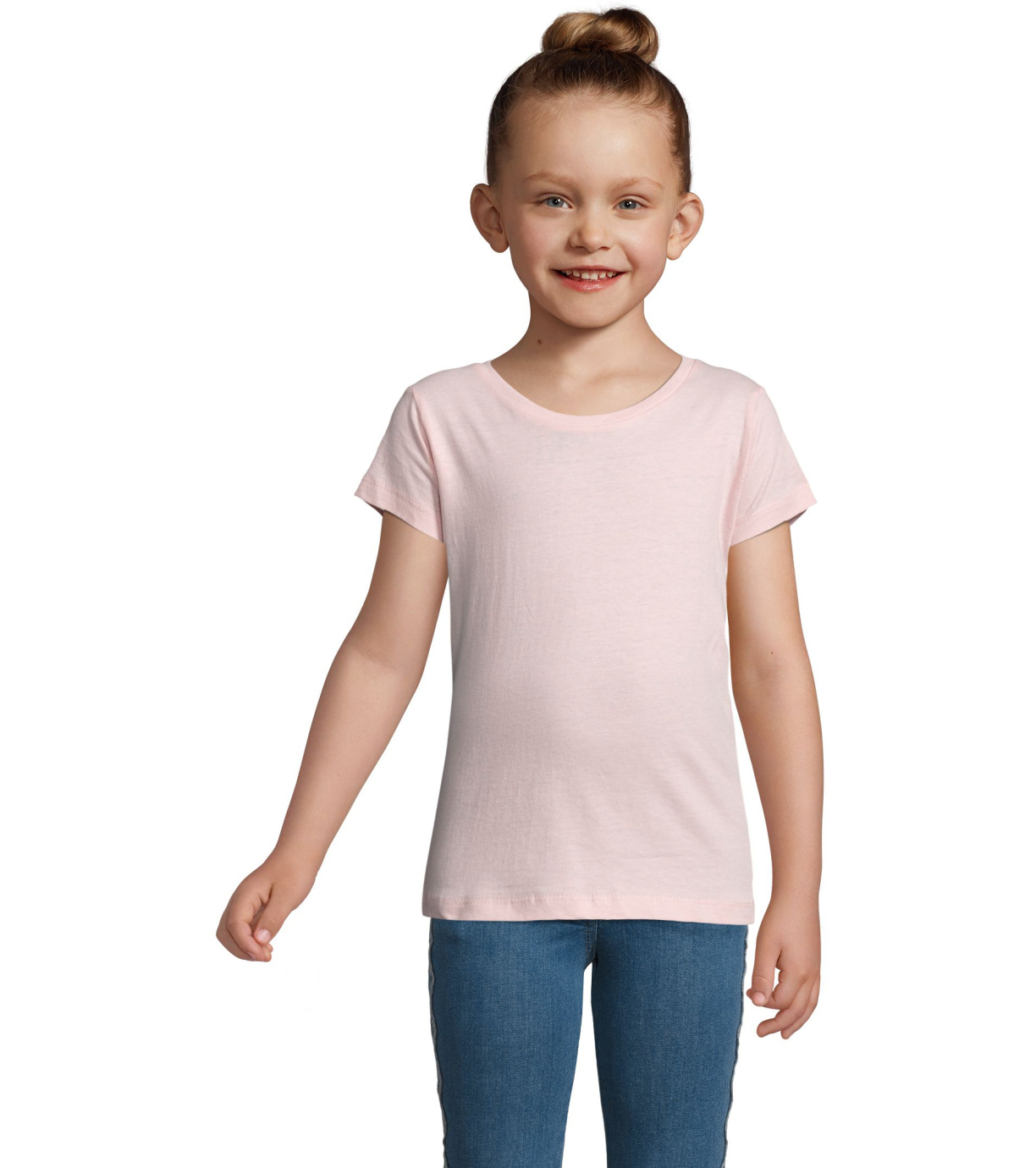 Dievčenské tričko s krátkym rukávom a okrúhlym výstrihom. Vypasovaný strih na pohodlné nosenie. Tenší golier s elastickým rebrovaním.